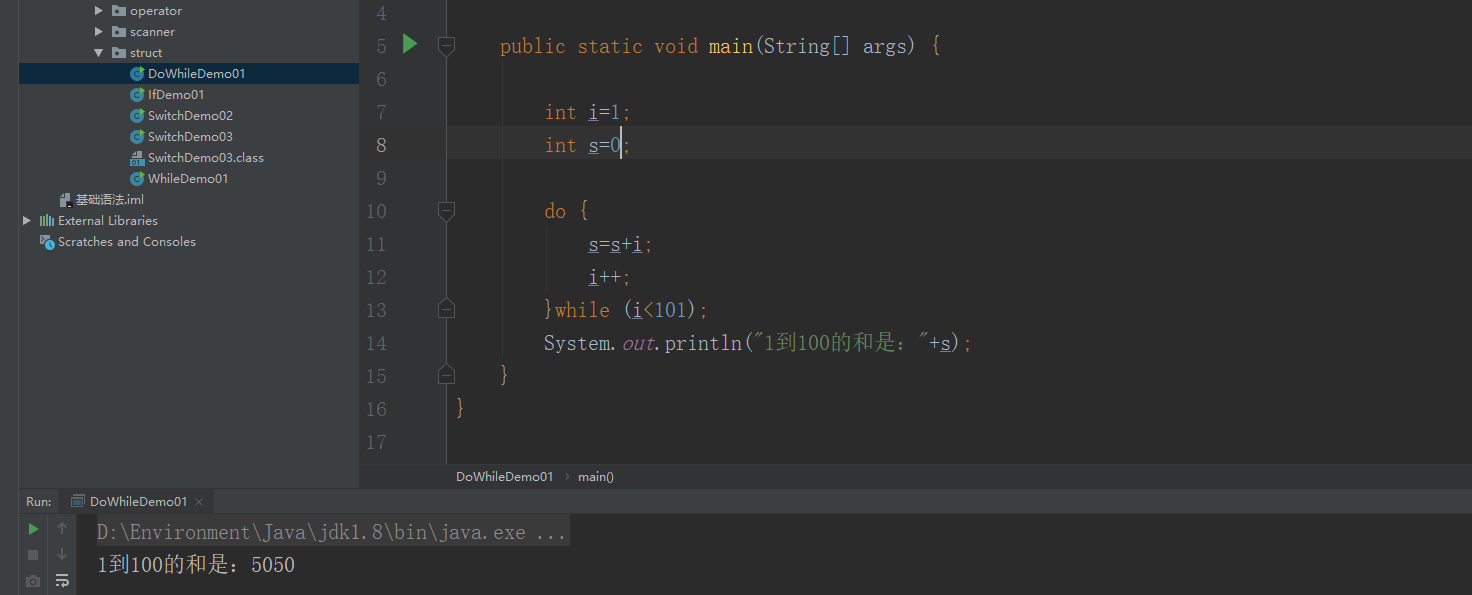 Do-While总是保证循环体会被至少执行一次!这它们的主要差别。