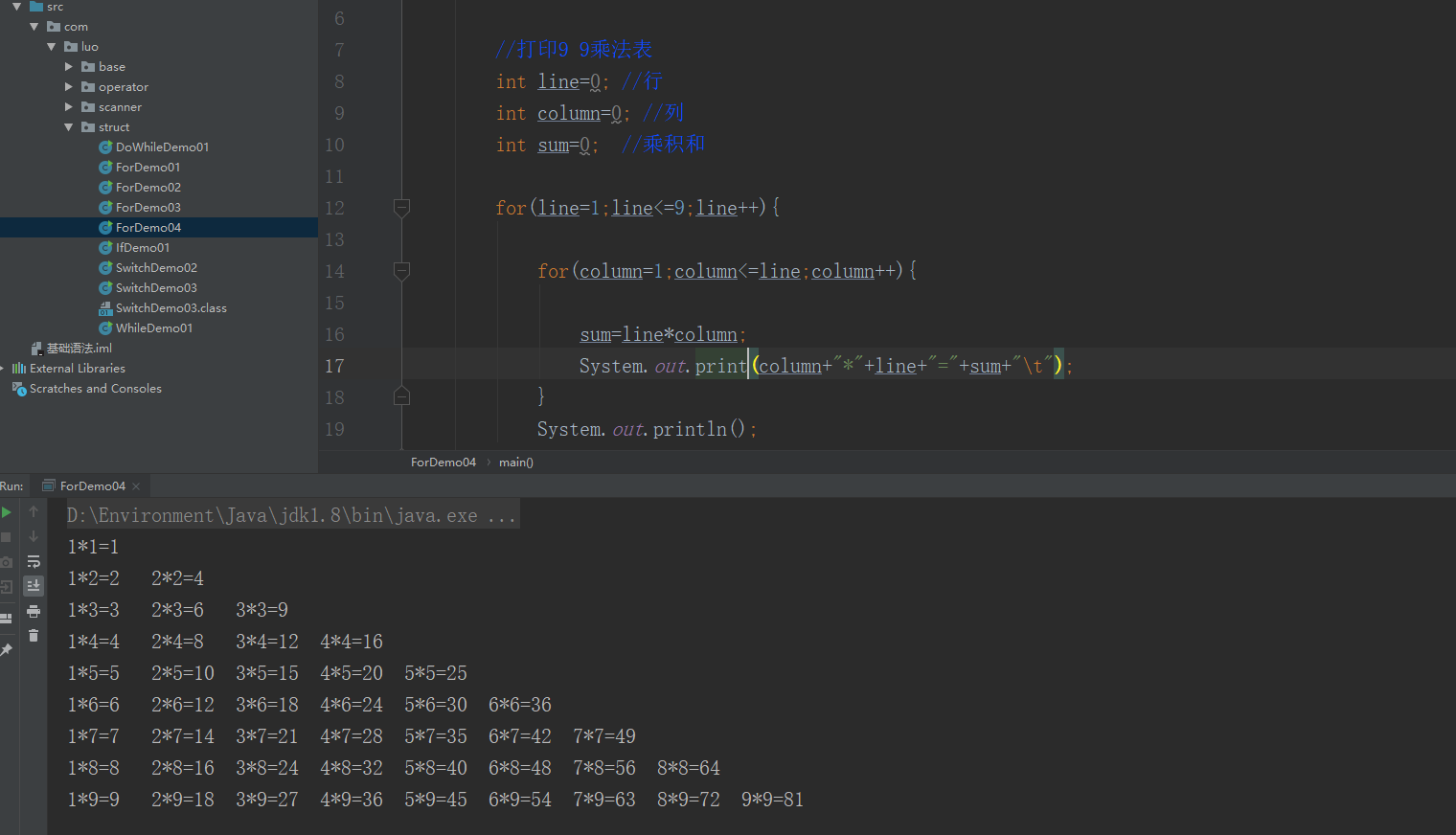 Java 打印99乘法表