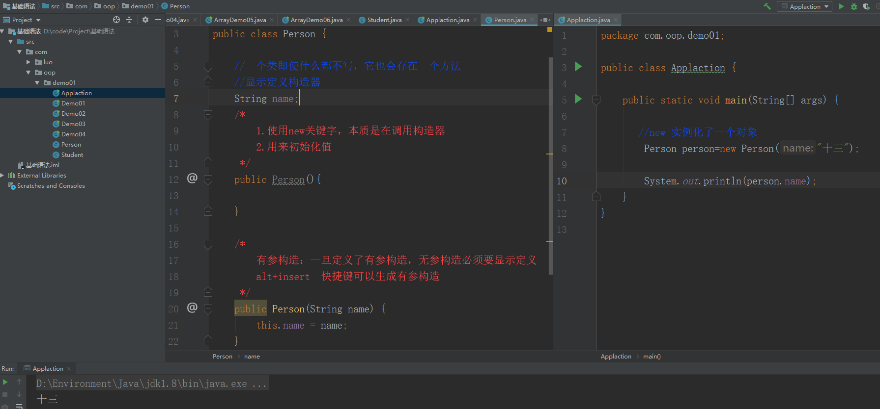 注意点:1.定义有参构造之后,如果想使用无参构造,显示定一个无参的构造。