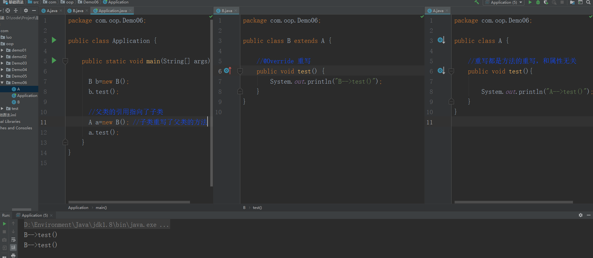 为什么要重写:父类的功能,子类不一定需要,或者不一定满足! Alt+Insert :override;