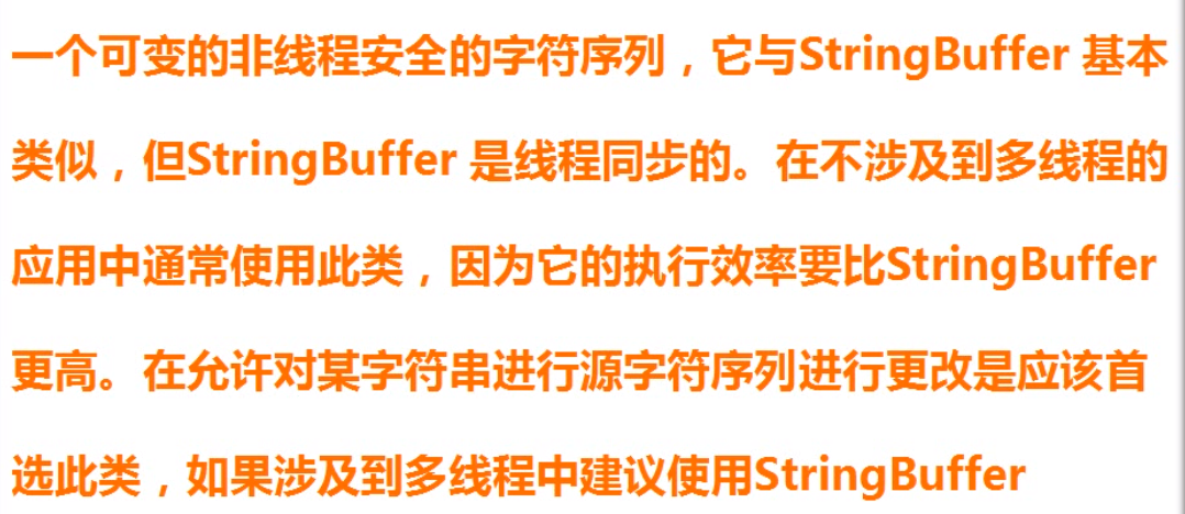 StringBuilder 可变长 单线程数据量较大 效率高,不安全