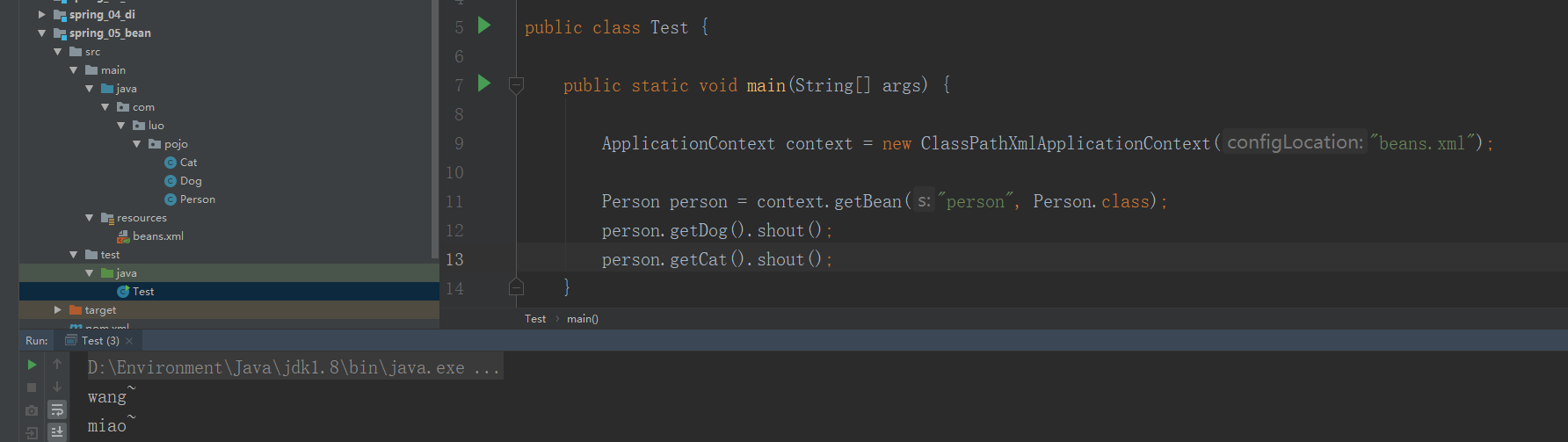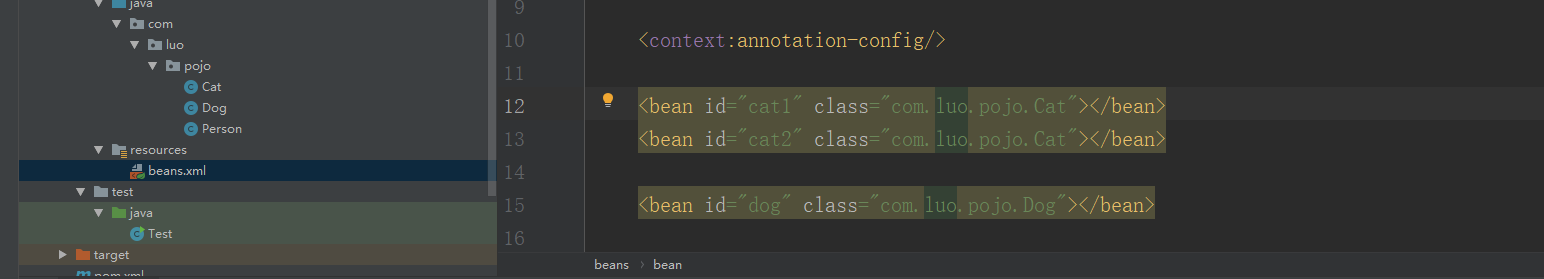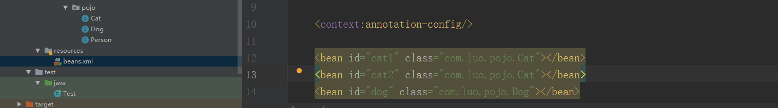 <bean id="cat" class="com.luo.pojo.Cat"></bean>