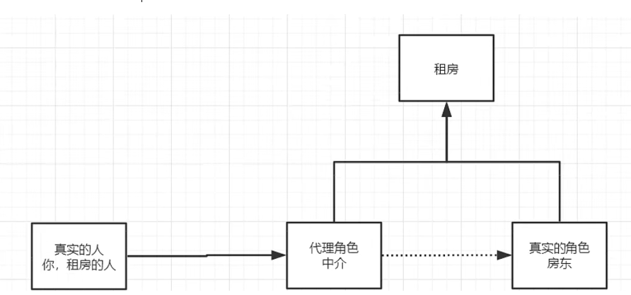 这里我举一个例子,比如我们(我们是一个真实的人)想租一个房子,我们应该直接去找房东(房东是一个真实的角色),但是现实并不是那么如意,房东可能发了很多广告信息也没有组出去,或者房东并不喜欢那些繁琐的签合同等一系列事情,我们想找租房的时候或许也很难找到一个称心的房子,这时候就出现了一种职业中介(代理角色)这时候我们从直接找房东(真实角色)转变成了找中介(代理角色)。