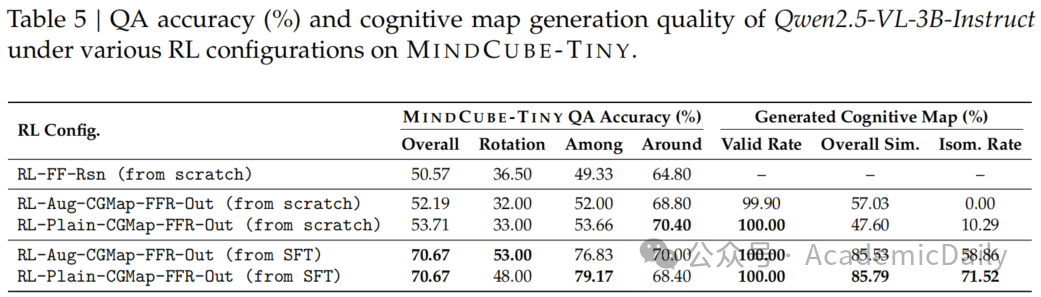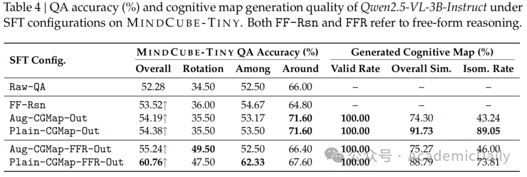 显著的改进来自 “先建图后推理” 的协同方法,该方法联合训练模型先生成认知地图,再基于地图进行推理。