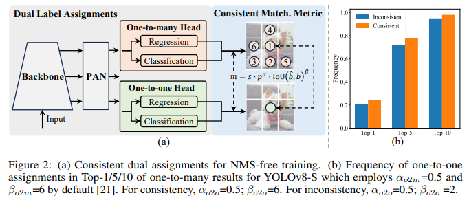 无NMS训练: 采用一致的对偶分配来消除对NMS的需求,从而减少推理延迟。