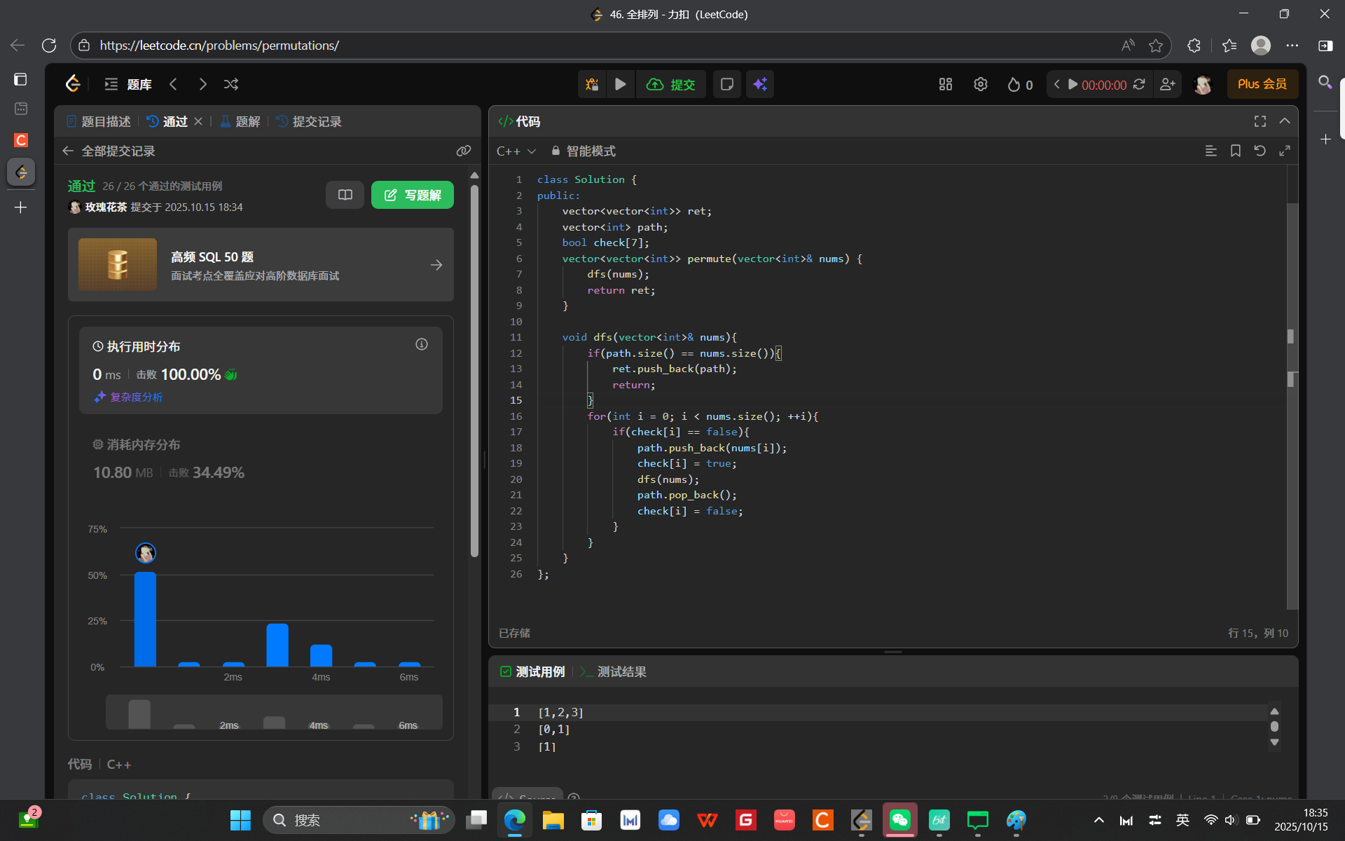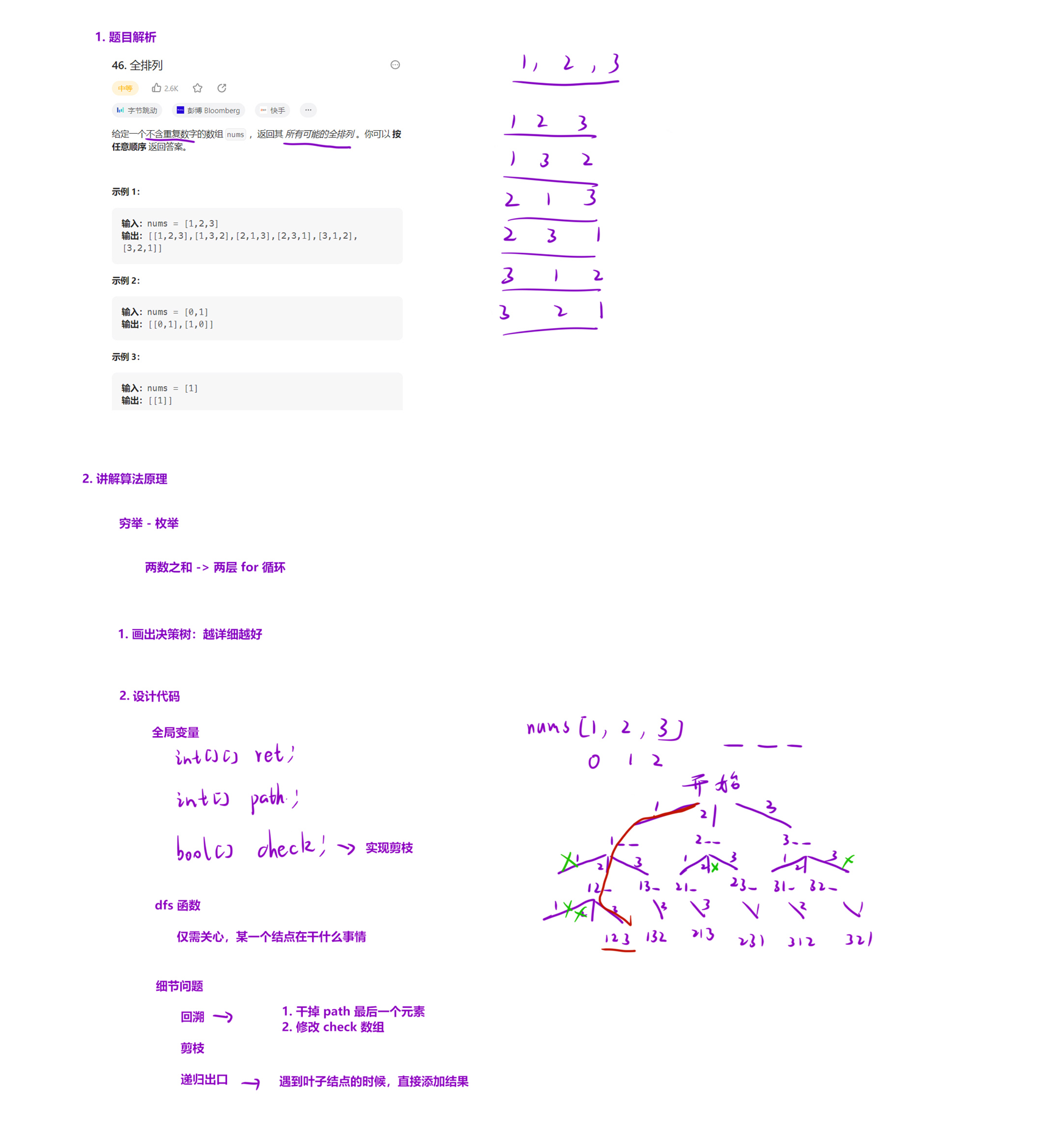 每个数能否放入当前位置,只需判断该数之前是否出现。具体可通过递归函数 backtrack 和标记数组 visited 实现全排列。