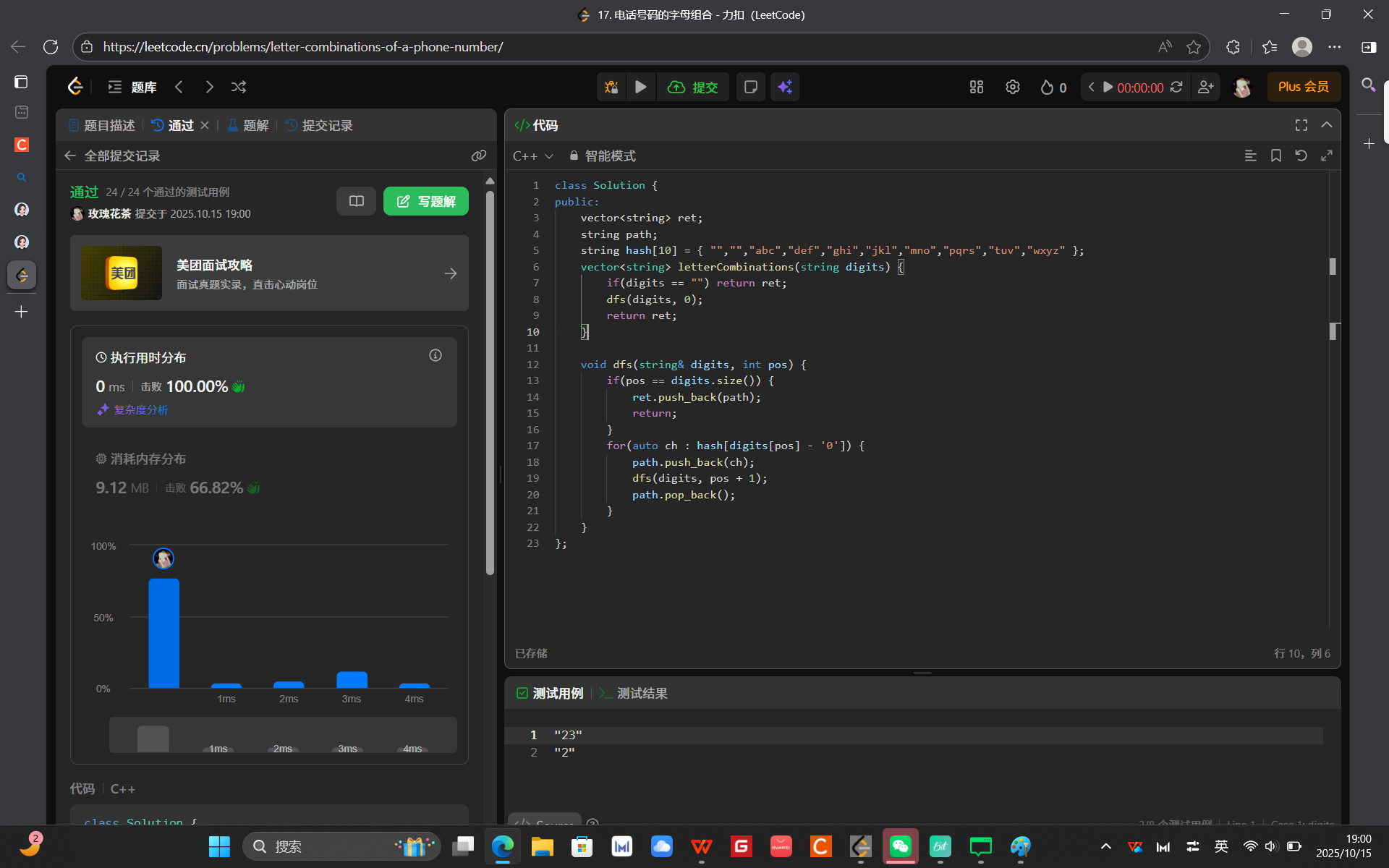 index等于digits的长度时,将ans加入到res中并返回;取出当前处理的数字