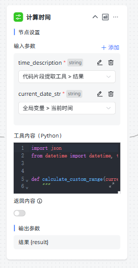 | 自定义工具 | ①配置输入参数 ②填写工具内容 ③关闭返回内容 | ![]() |