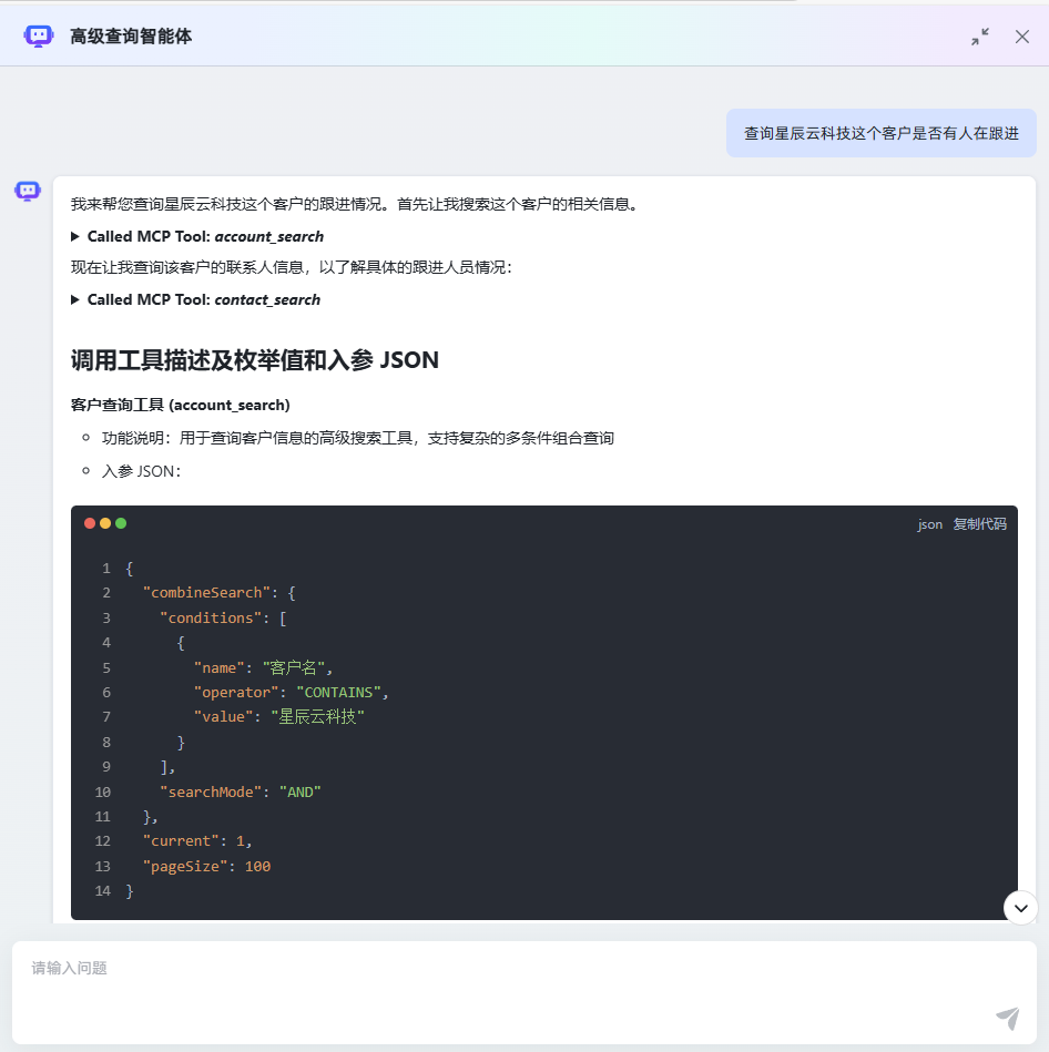 在 Cordys CRM 日常使用中,用户查询线索商机、客户跟进状态时往往需手动查询数据,筛选信息。今天带来的高级查询智能体,可以通过集成 AI 时间提取、代码片段解析、时间戳计算与 Cordys MCP 服务,实现直接提问AI即可获得答案的效果,显著提升 CRM 信息检索效率与操作便捷性。