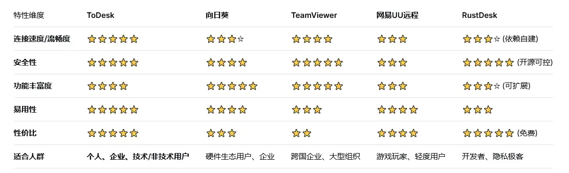 实用指南:五大远程控制软件横评:ToDesk、向日葵、TeamViewer、RustDesk、网易UU哪家强?