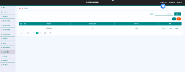 管理员可以对试卷信息进行添加修改删除管理。界面如下图所示: