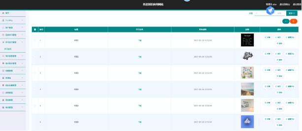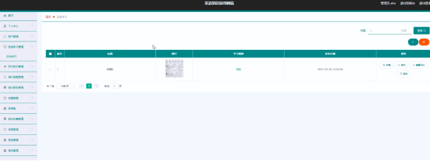 系统管理员可以对在线学习信息进行添加,修改,删除以及查询操作。具体界面如图所示。