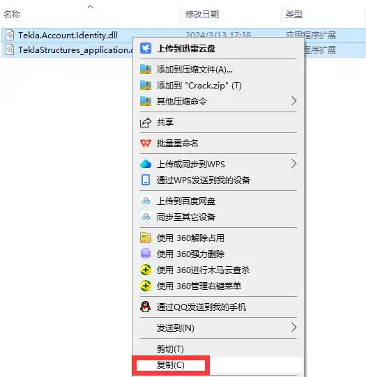 8.框选【Crack】文件夹下的两个文件,鼠标右键,点击【复制】