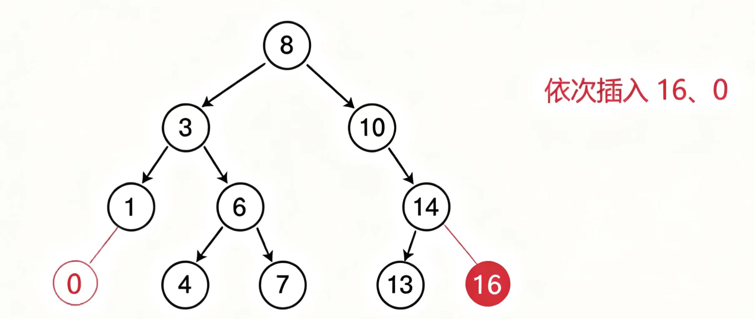 如果是空树,就直接创建一个新的节点,不是的话就从根节点开始比较,小就递归到左数去比较,大就递归到右数去比较,找到合适的位置,创建节点,建立链接,如果遇到一样的就返回错误。