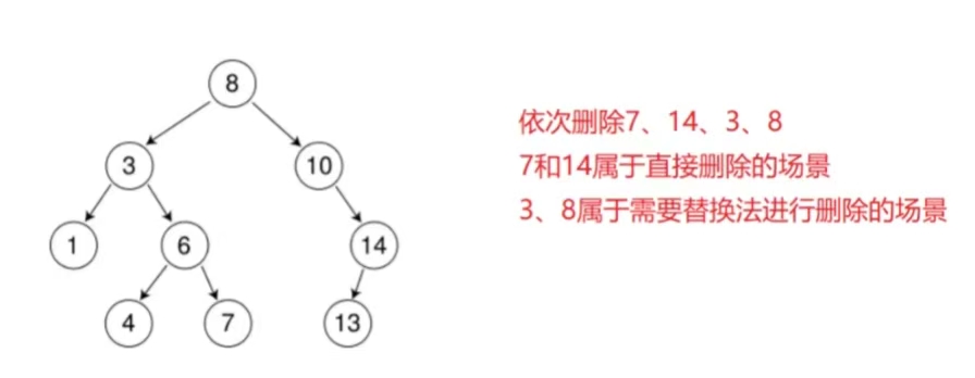 找到左子树的最右节点,交换两个数的值,在递归中去删除,因为交换了之后,左子树的最右节点的位置的右一定是空的。