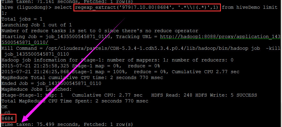 hive> select regexp_replace('979|7.10.80|8684', '.*\\|(.*)',1) from hiveDemo limit 1;