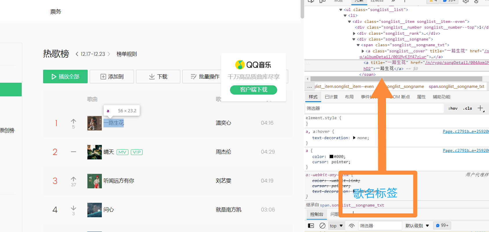 QQ音乐是隶属于腾讯音乐娱乐集团的音乐流媒体平台。自2005年创立,QQ音乐注册用户总量已达8亿。QQ音乐以优质内容为核心,以大数据与互联网技术为推动力 ,致力于打造“智慧声态”的“立体”泛音乐生态圈,为用户提供多元化的音乐生活体验。通过对qq音乐热播榜的爬取与数据可视化分析,能够更好了解当代青年所关注的社会热点,了解当代青年的情感寄托等。