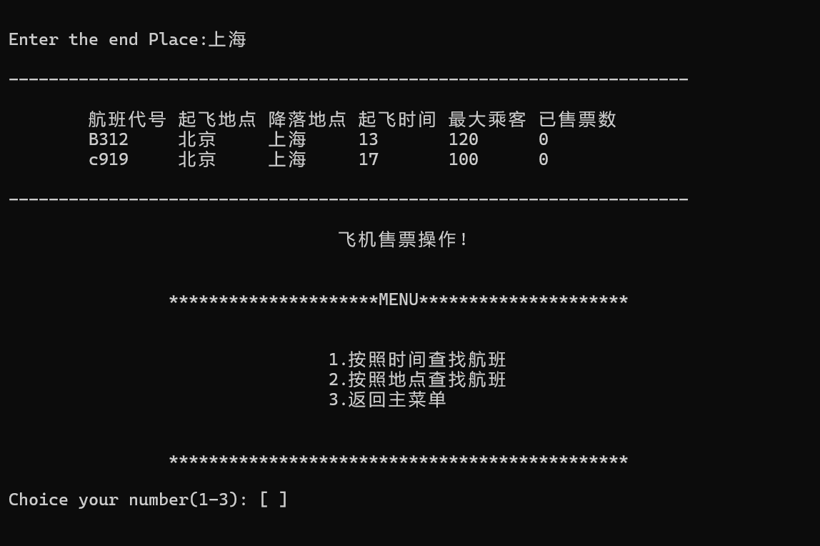 puts("\t\t\t\t 飞机售票操作!\n\n");