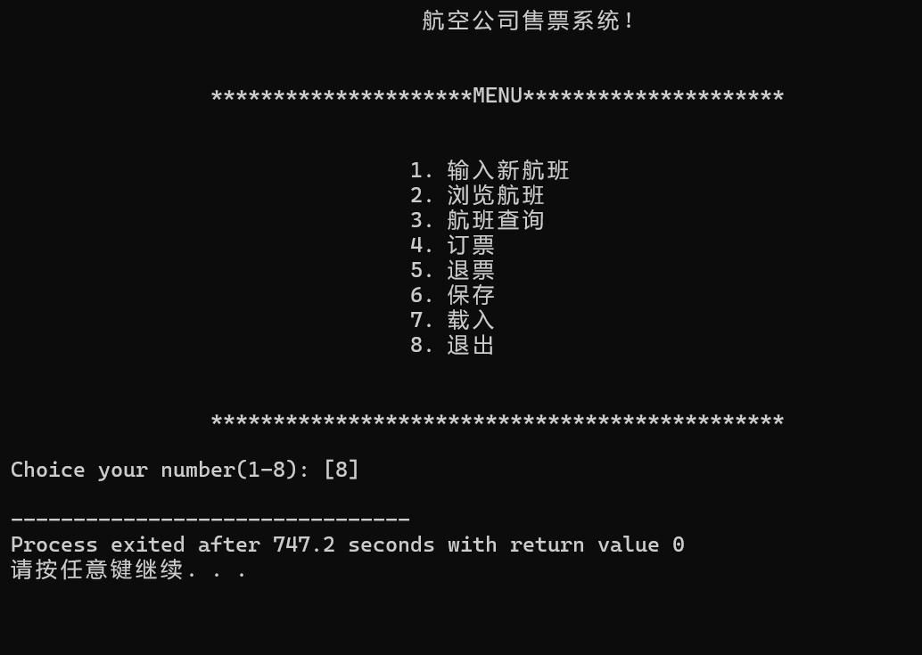 puts("\t\t\t\t 航空公司售票系统!\n\n");