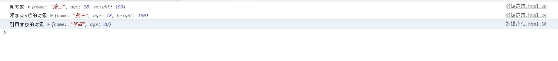 Object上有一个数据冻结的方法,被冻结的对象不能对他进行拓展,对冻结的对象进行添加,修改,删除等操作是无效的,但是对象的读取是正常的。看代码: