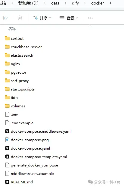 下载好Dify安装包以后,我们来看一下目录的结构: