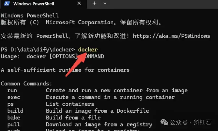 之前我们说过,Docker就是运行Dify等工具的软件,所以我们要在Docker里启动Dify,就运行一下这条命令:
