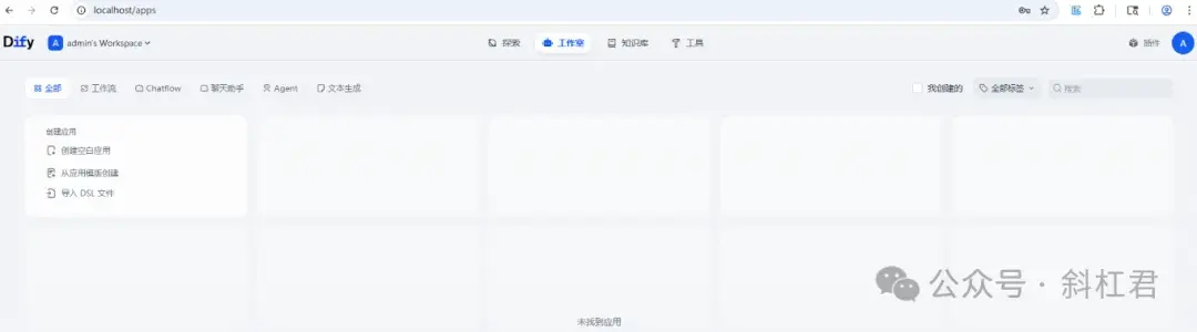 到这里,看到这个界面就说明我们的Dify安装成功了,接下来就可以搭建我们的工作流了。