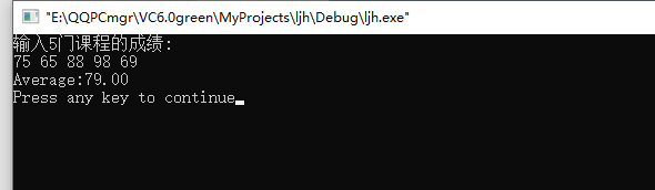 6.编写程序,通过一维数组接收5门课程的成绩,并输出平均分数。