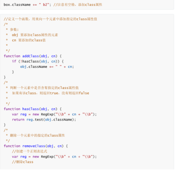 我们可以通过修改元素的class属性来间接的修改样式.这样一来,我们只需要修改一次,即可同时修改多 个样式,浏览器只需要重新渲染页面一次,性能比较好, 并且这种方式,可以使表现和行为进一步的分离
