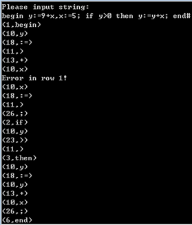 default: cout<<"("<<syn<<","<<token<<")"<<endl;break;