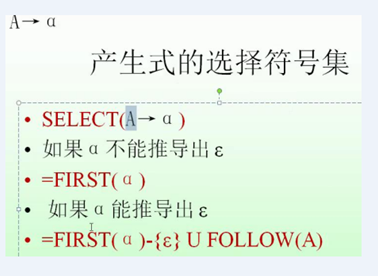Select(A->ε)=First(ε)-{ε}U Follow(A)=Follow(A)={p}