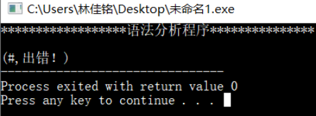 输入单词串,以“#”结束,如果是文法正确的句子,则输出成功信息,打印“success”,否则输出“error”,并指出语法错误的类型及位置。