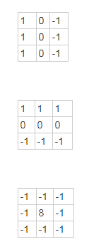 a2=np.array([[1,1,1],[0,0,0],[-1,-1,-1]]) #水平边缘检测