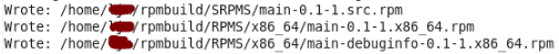然后用 main-0.1-1.src.rpm 练习通过src.rpm文件编译生成自己的安装包: