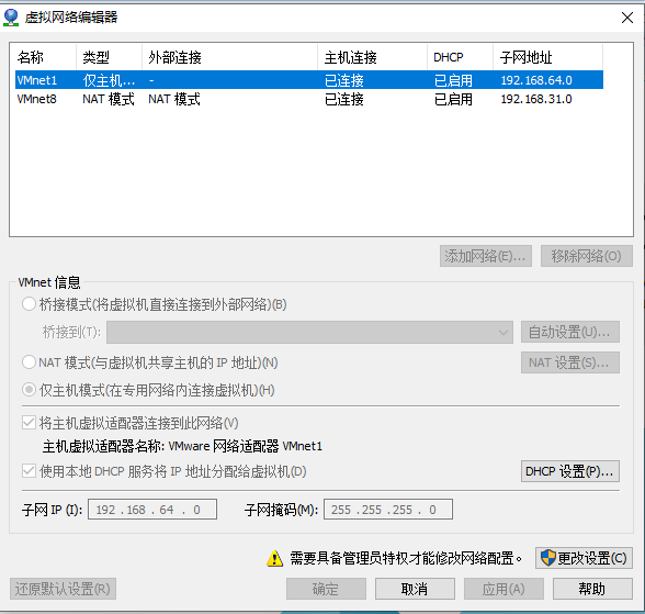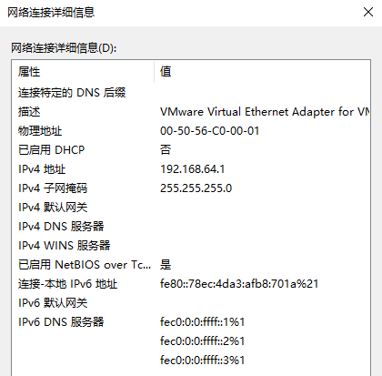 从win10主机上查看VMnet1的参数: