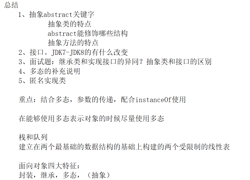 约定了返回值 约定了访问权限 约定了参数列表 需要再重写的时候去定义方法体