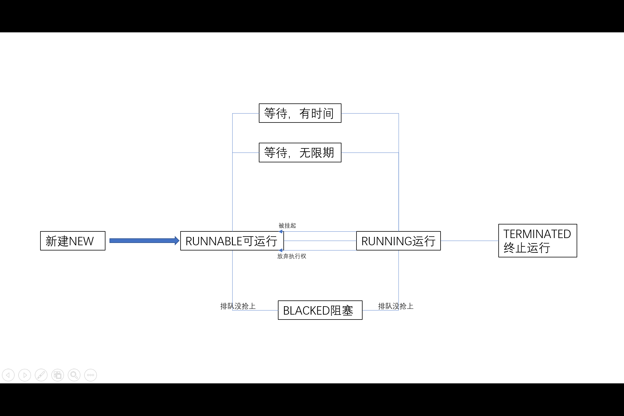 BLOCKED:阻塞。因为某些原因不能立即执行需要挂起等待