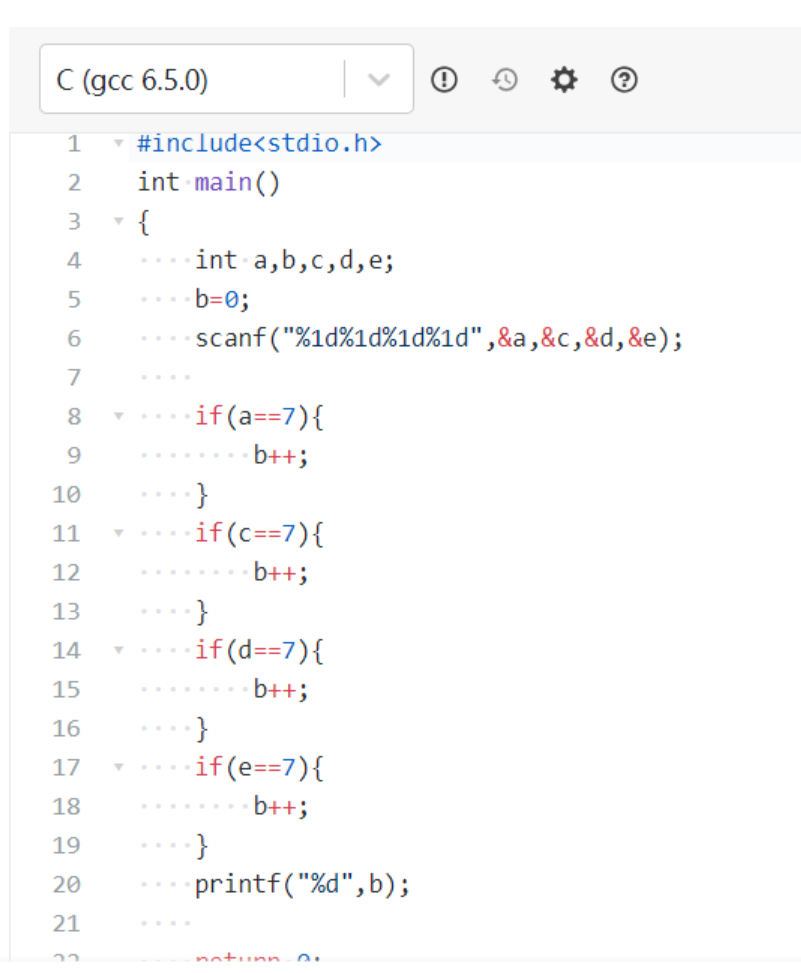 从键盘读入一个4位数的整数,求该数中有多少位是7
