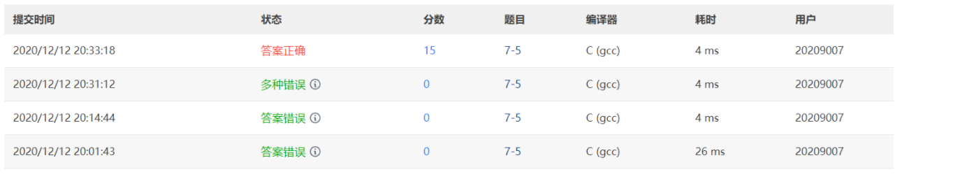 部分正确:if(sum>=1)情况打错导致只有一个结果,其余结果不显示。