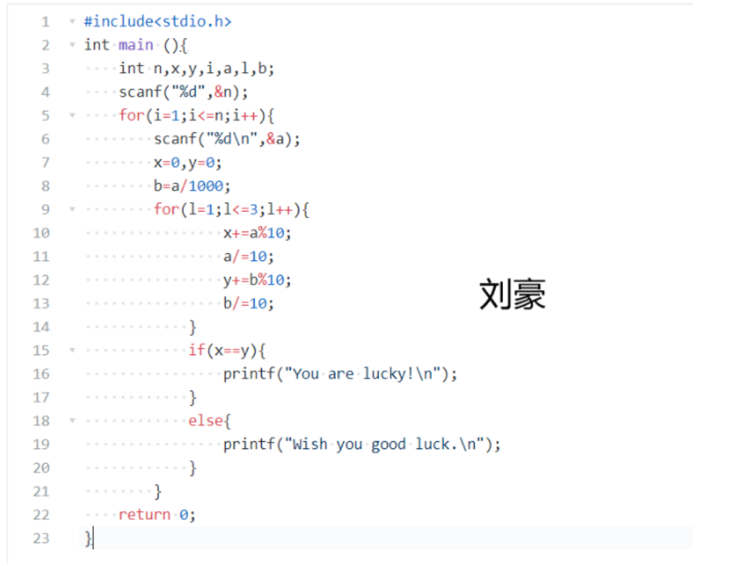 | 2 233008 123456 | You are lucky! Wish you good luck. | 编译正确 |