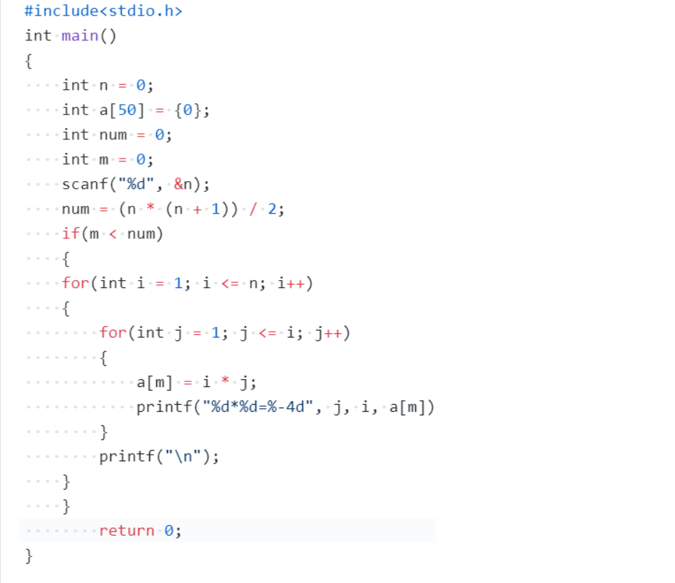 数据表达:用了i,j,n三个变量,其中n由scanf输入,ij分别为for循环的初始值。