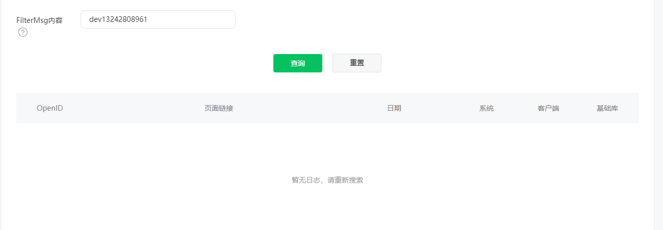 一般用户反馈,我们可以获取用户手机号,或者使用微信小程序的客服功能的获取到用户id等等,这些就是我们查找用户日志的有效数据。再加上时间段的过滤,例如我查看开发环境13242808961手机号码用户的日志