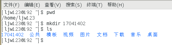 2、在用户主目录(家目录)下面创建一个以自己学号命名的目录并查看是否创建成功