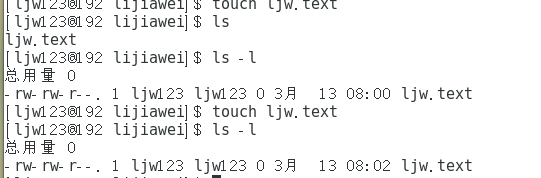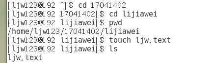 touch ljw.text #在当前目录下创建文件并命名为 ljw.text