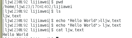 echo "Hello world">ljw.text #向ljw.text中写入字符串