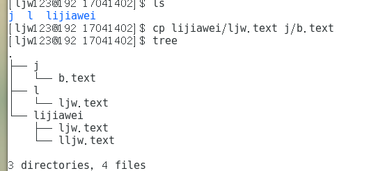 cp lijiawei/ljw.text l/ #将lijiawei目录下文件拷贝至l目录下