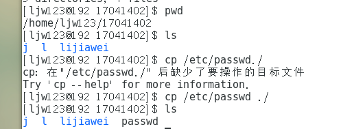 8、把/etc目录下面的文件passwd复制到自己学号命名的文件夹下