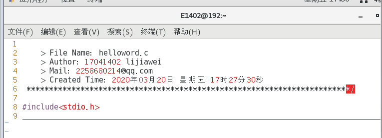 d、创建并打开一个以.c结尾的文件,如vim helloworld.c