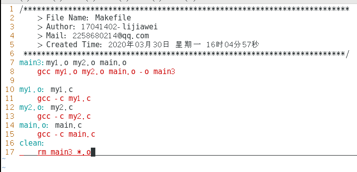 注意这里每个gcc以及最后的rm前面都是有一个tab