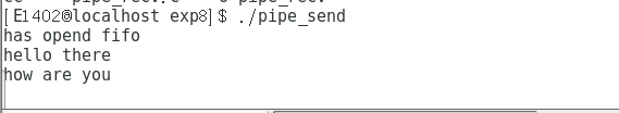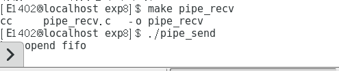 分别开启两个终端,分别运行pipe_send和pipe_recv: